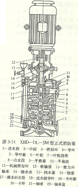 立柱式多級(jí)消防泵泵上方滾動(dòng)軸承選用鈣基無(wú)鹽黃油潤(rùn)化。